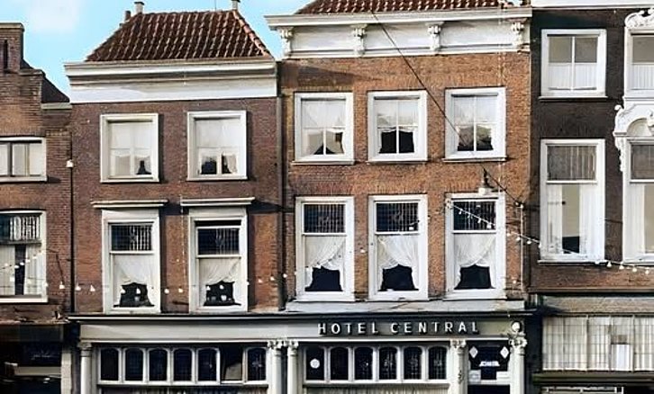 DELFT - De Wijnhaven met Hotel Central omstreeks 1963