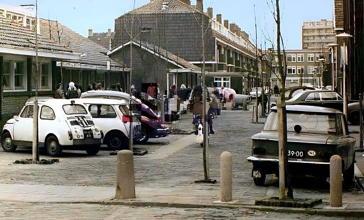 DELFT - De Raamstraat met links de kleuterschool begin jaren 70