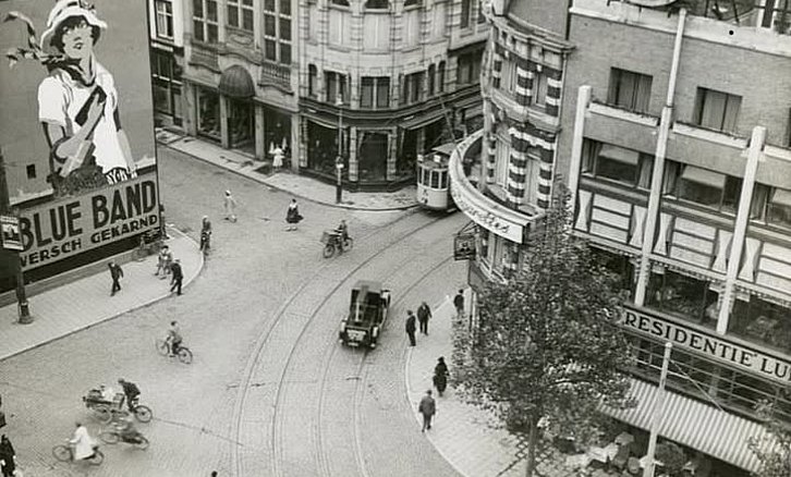 Den Haag zoals het was - Het Spui met rechts de Lange Poten (met tram) en de Hofstraat in de jaren 30