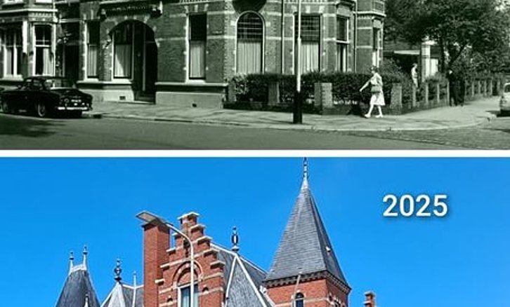 Met dank aan Otman El Hitouri - Om de hele foto te zien even op de foto klikken aub. De Statenlaan bij de hoek met de van Bleiswijkstraatin 1967 en 2025