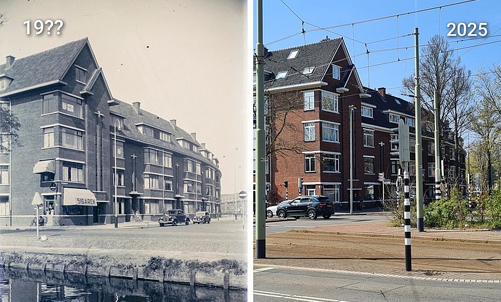 Met dank aan Otman El Hitouri - Om de hele foto te zien even op de foto klikken aub. De Edisonstraat, gezien richting Beeklaan in 1975 en 2025