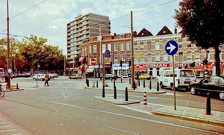 Het Hobbemaplein gezien naar de De Heemstraat in 1983