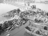 Dordrecht: De Watersnoodramp Godfried Schaclken Singel. Je kijkt in de richting van de Biesboschstraat met de molen aan de Noordendijk