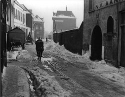 De Boogjes richting het Spuiplein omstreeks 1980. Links het parkeerterrein tussen de Botgensstraat en de Kleine Spuistraat