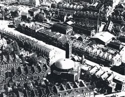 Luchtfoto uit 1980 van het fabrieksterrein van chemische fabriek Dupont de Nemours aan de Baanhoekweg (onder); links de Grevelingenweg en de 2e Merwedehaven, rechtsonder de Baanhoekweg
