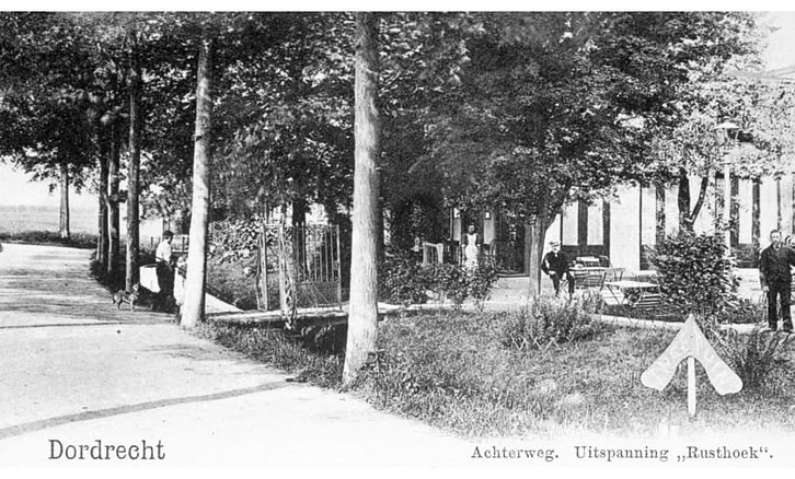 De Achterweg rond 1900 met uitspanning Rusthoek