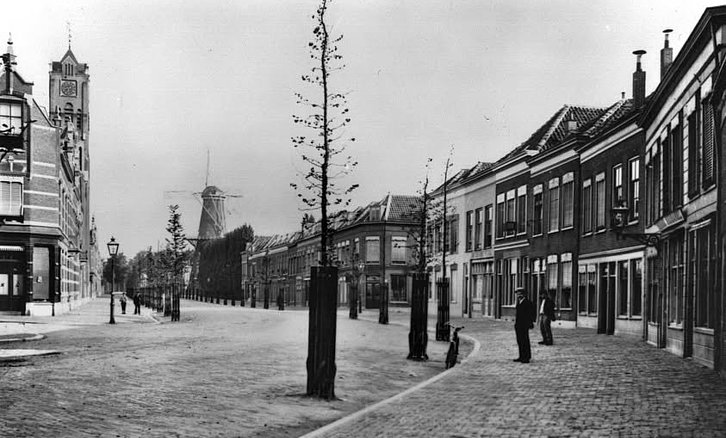 De Bleekersdijk in 1910 met op de achtergrond Molen De Maagd.