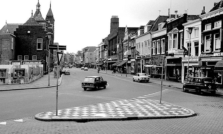 DORDRECHT - Het Bagijnhof 1973 rechts reisbureaus v. Maren en Groeneveld dan C&A. Links Vinke, Linders en postkantoor