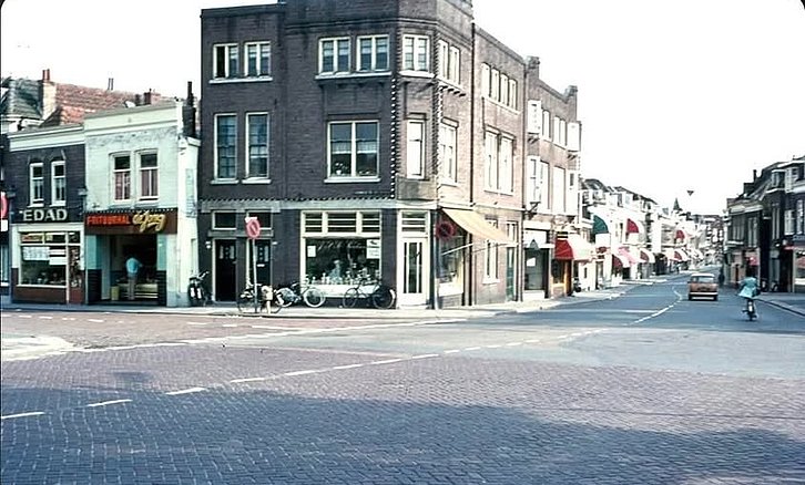 DORDRECHT- De Spuiweg richting Krispijntunnel in de jaren 70. Links, toen nog de Cornelis de Wittstraat, nu Spuiboulevard. Op de hoek Spuiweg was de slagerij van St.Nicolaas, daarnaast de Frituurhal van De Jong.