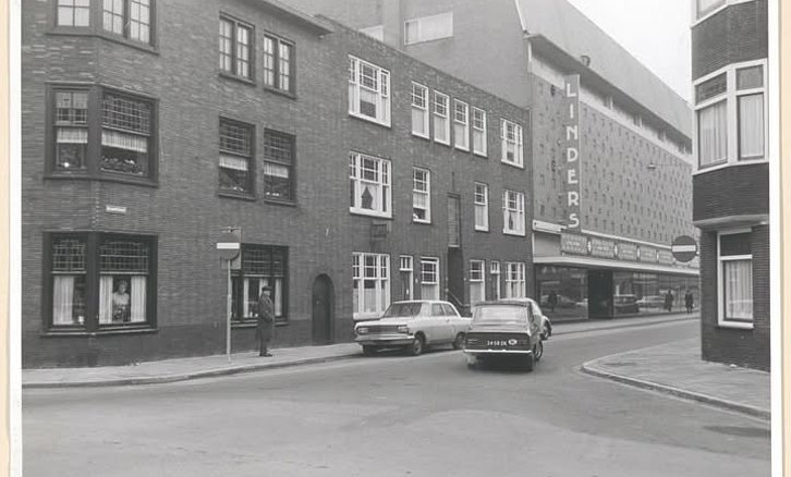 DORDRECHT- De Raamstraat en warenhuis Linders, gezien vanaf het Bethlehemplein naar het Bagijnhof in 1969