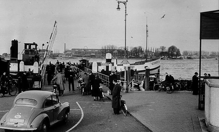 Dordrecht Oudste Stad van Holland - De Merwekade in de '50er jaren met veer naar Papendrecht.