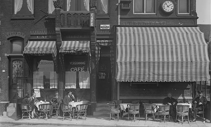 Dordrecht - ca 1920 het terras voor cafe Veerzicht van Krijgsman aan de Buiten Walevest bij het Zwijndrechts Veer