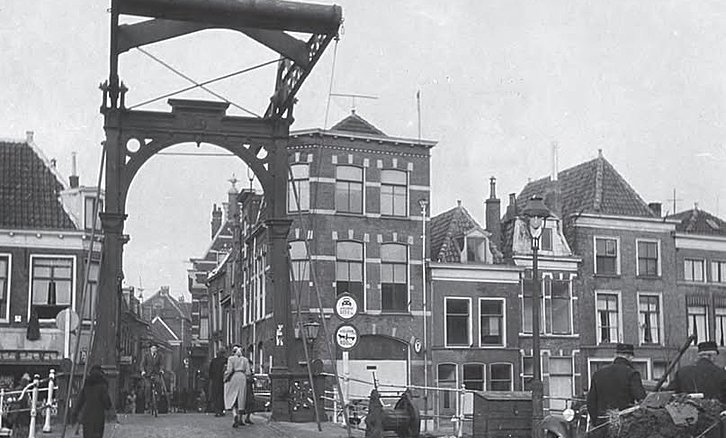 LEIDEN - De Hooigracht in 1932 bij de Gepekte Brug