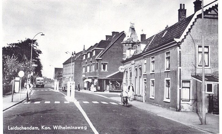 De Koningin Julianaweg bij de hoek met de Damweg in de jaren '50