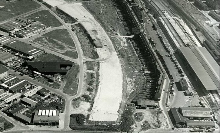 ROTTERDAM - Luchtfoto uit 1959 met rechtsonder station Schiedam-Rotterdam West