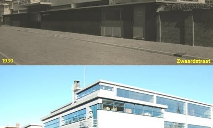 Een prachtige afbeelding gemaakt door Henk van Embden / Klik op de foto om deze helemaal te zien - Zwaardstraat in 1930 en 2024