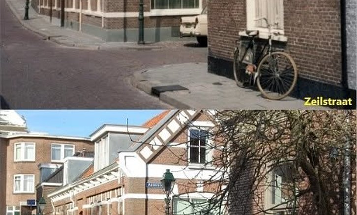 Een prachtige afbeelding gemaakt door Henk van Embden / Klik op de foto om deze helemaal te zien - Zeilstraat in 1972 en 2024.