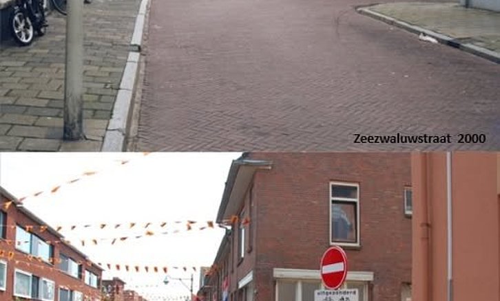 Een prachtige afbeelding gemaakt door Henk van Embden / Klik op de foto om deze helemaal te zien - Zeezwaluwstraat in 2000 en 2024