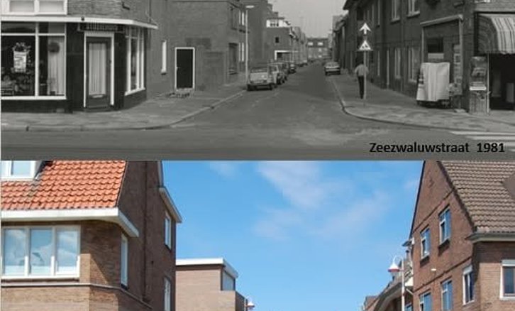 Een prachtige afbeelding gemaakt door Henk van Embden / Klik op de foto om deze helemaal te zien - Zeezwaluwstraat in 1981 en 2024