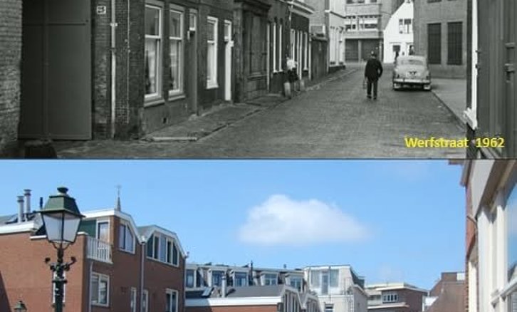 Een prachtige afbeelding gemaakt door Henk van Embden / Klik op de foto om deze helemaal te zien - Werfstraat in 1962 en 2024