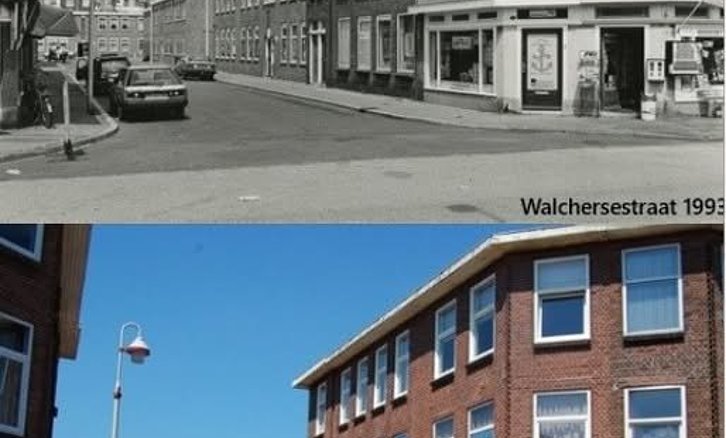 Een prachtige afbeelding gemaakt door Henk van Embden / Klik op de foto om deze helemaal te zien - Walchersestraat in 1993 en 2024