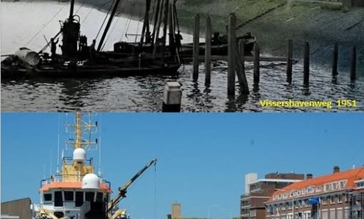 Een prachtige afbeelding gemaakt door Henk van Embden / Klik op de foto om deze helemaal te zien - Vissershavenweg in 1951 en 2024