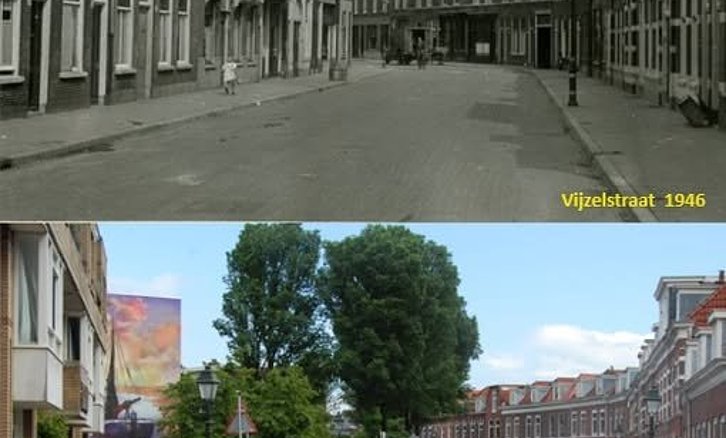 Een prachtige afbeelding gemaakt door Henk van Embden / Klik op de foto om deze helemaal te zien - Vijzelstraat in 1946 en 2024