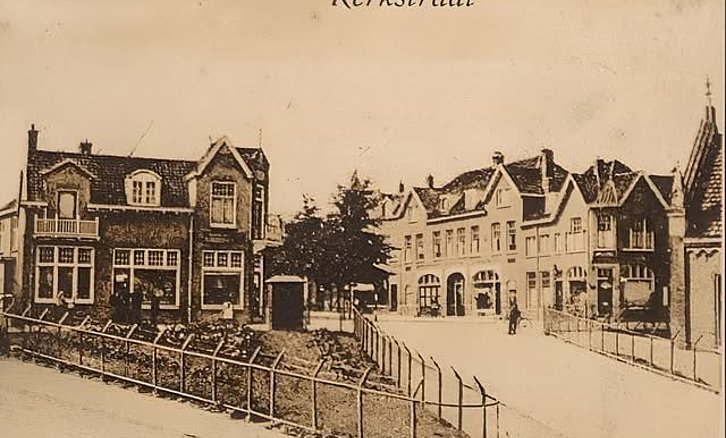 De Stationsweg omstreeks 1918 met in het verlengde de Kerkstraat