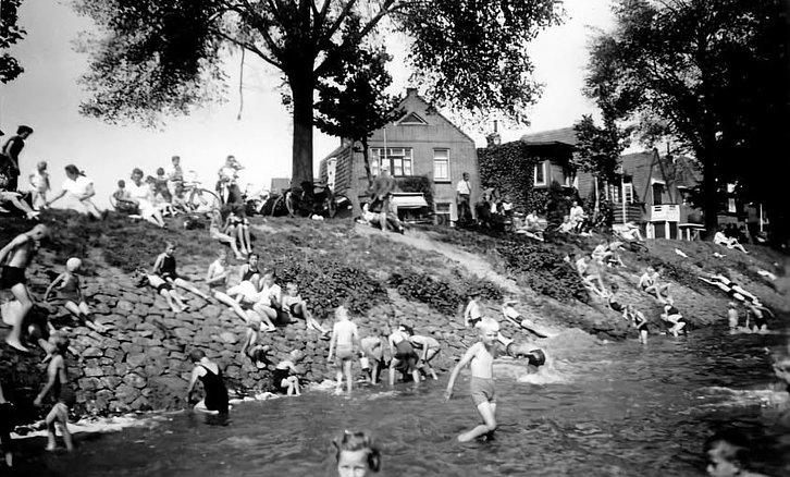 De Adriaan Volkersingel waar toen in de jaren 60 nog volop in de Merwede werd gezwommen