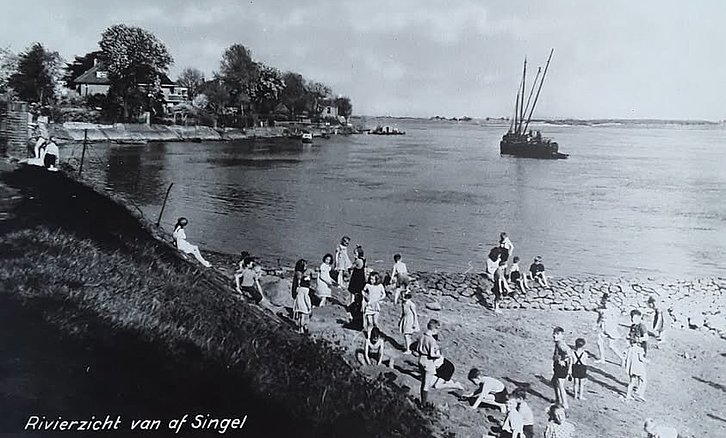 De Adriaan Volkersingel waar toen in de jaren 60 nog volop in de Merwede werd gezwommen