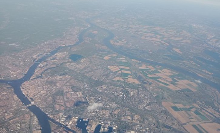 DORDRECHT - Luchtfoto Dordrecht (recent). Tevens zien we Zwijndrecht, Papendrecht, Sliedrecht een verder weg nog Hardinxveld,Werkendam en heell in de verte zelfs Gorinchem