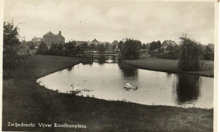 ZWIJNDRECHT - Het Raadhuisplein bij de vijver eind jaren 40